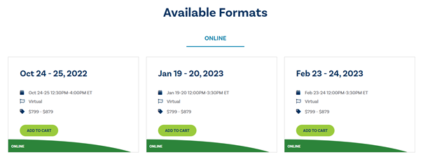 Next, complete your registration by adding the desired course to the cart by selecting the ADD TO CART button.