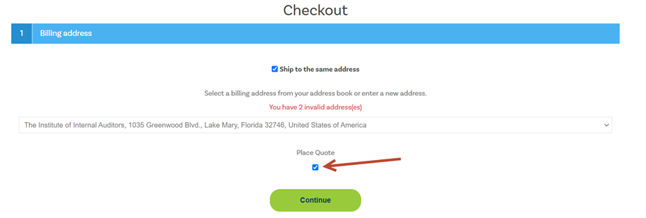 **if you are not ready to make payment, you have the option to create a quote by selecting the checkbox beneath Place Quote.