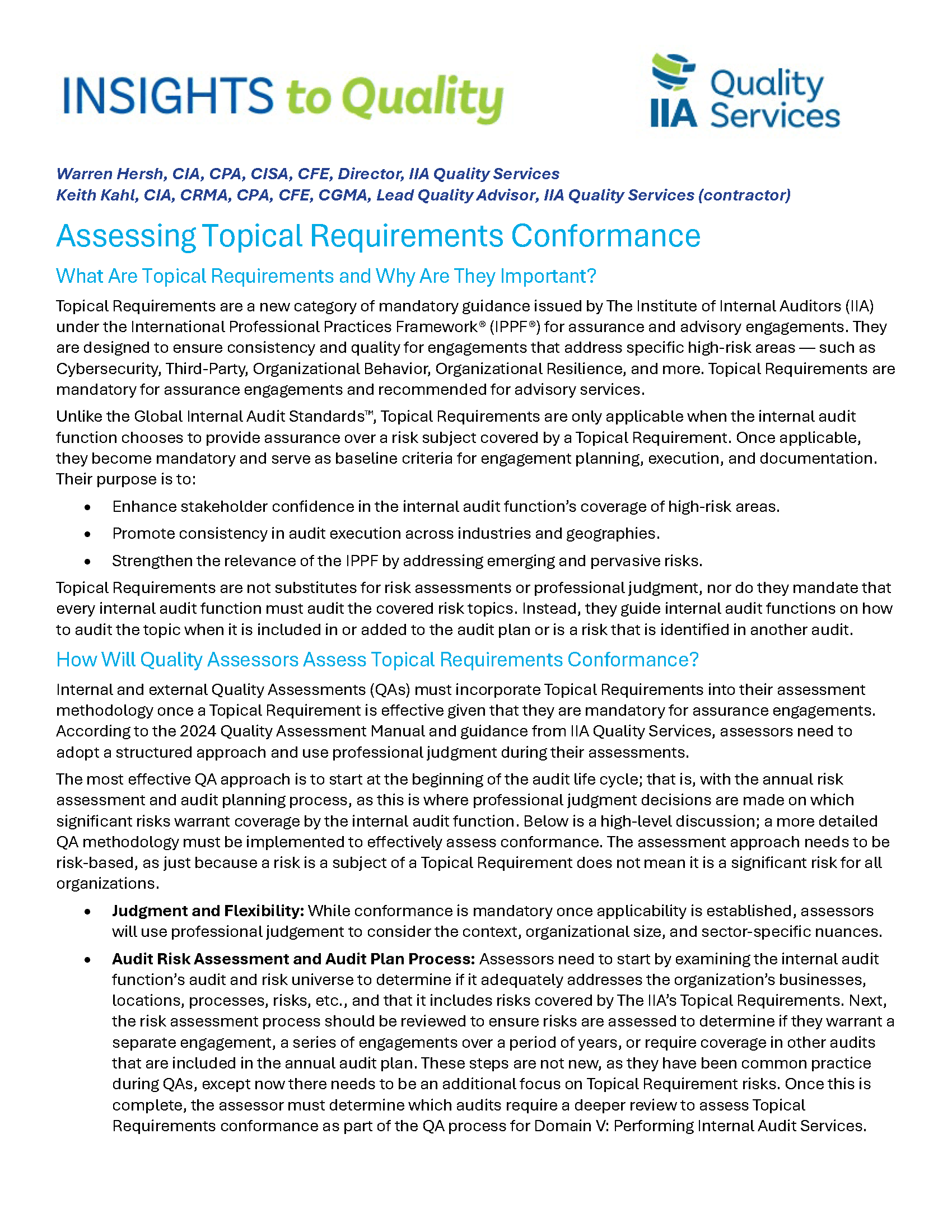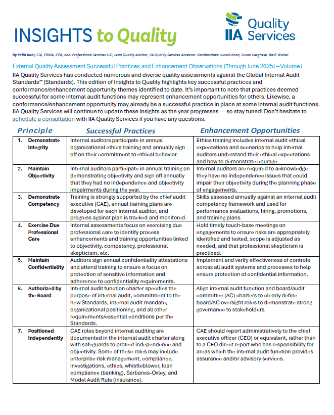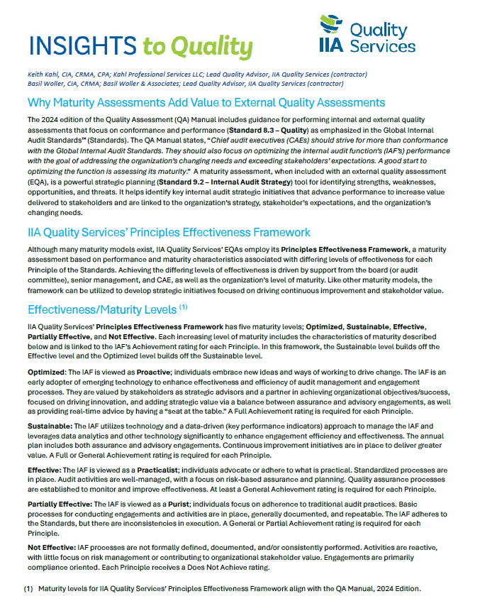 IIA Quality Services is proud to release our latest Insights to Quality - External Quality Assessment...