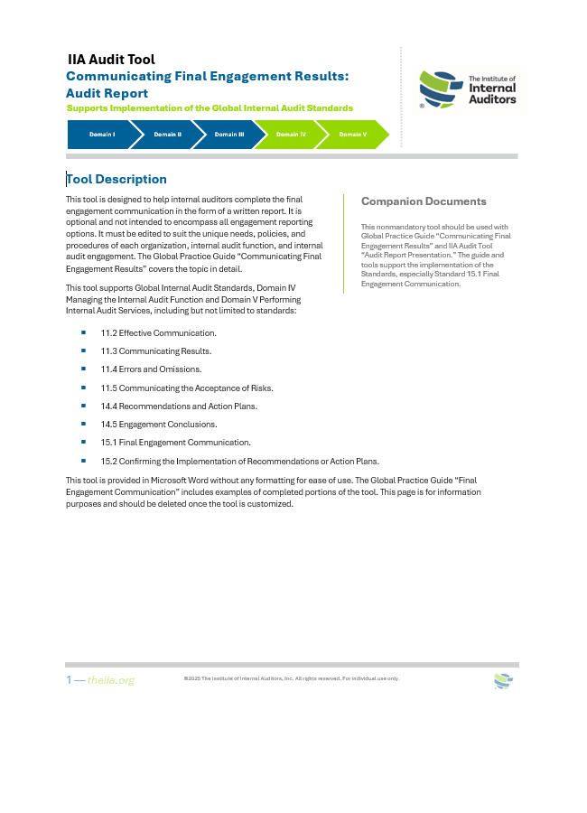 The Institute of Internal Auditors’ Global Internal Audit Standards, The Redbook, guides the worldwide professional practice of internal auditing and serves as a basis for evaluating and elevating the quality of the internal audit function. The IIA’s Internal Professional Practices Framework, which also includes Topical Requirements and Global Guidance.
